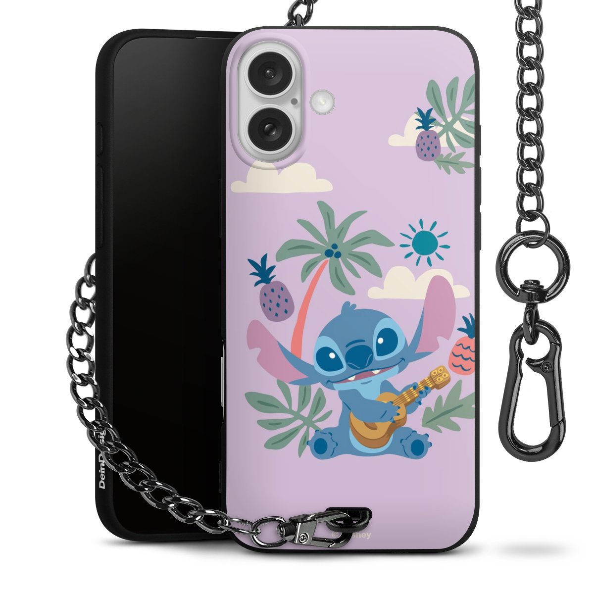 Die Handyhülle verfügt über eine mittig am unteren Rand platzierte Öse, an der die Metallkette stabil befestigt ist. Bestelle die Hülle einfach für Dein Smartphone-Modell, dann passt sie wie angegossen und Du brauchst sie bloß einmal anzudrücken. Handy in die Tasche, Karabiner an den Hosenbund – schon kann die Party starten.