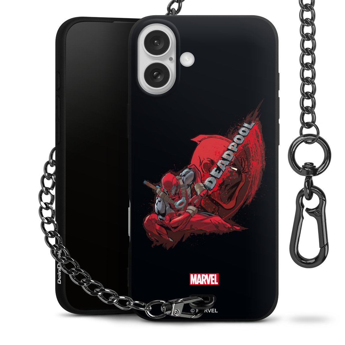 Die mattschwarze Silikon-Handyhülle besteht aus robustem TPU (thermoplastisches Polyurethan). Sie ist flexibel und schützt Dein Smartphone vor Stößen und Kratzern. Die Kette sowie der Karabinerhaken sind aus Metall in Gunmetal-Optik gefertigt. Für dieses Produkt kommen ausschließlich TÜV-geprüfte Materialien zum Einsatz.