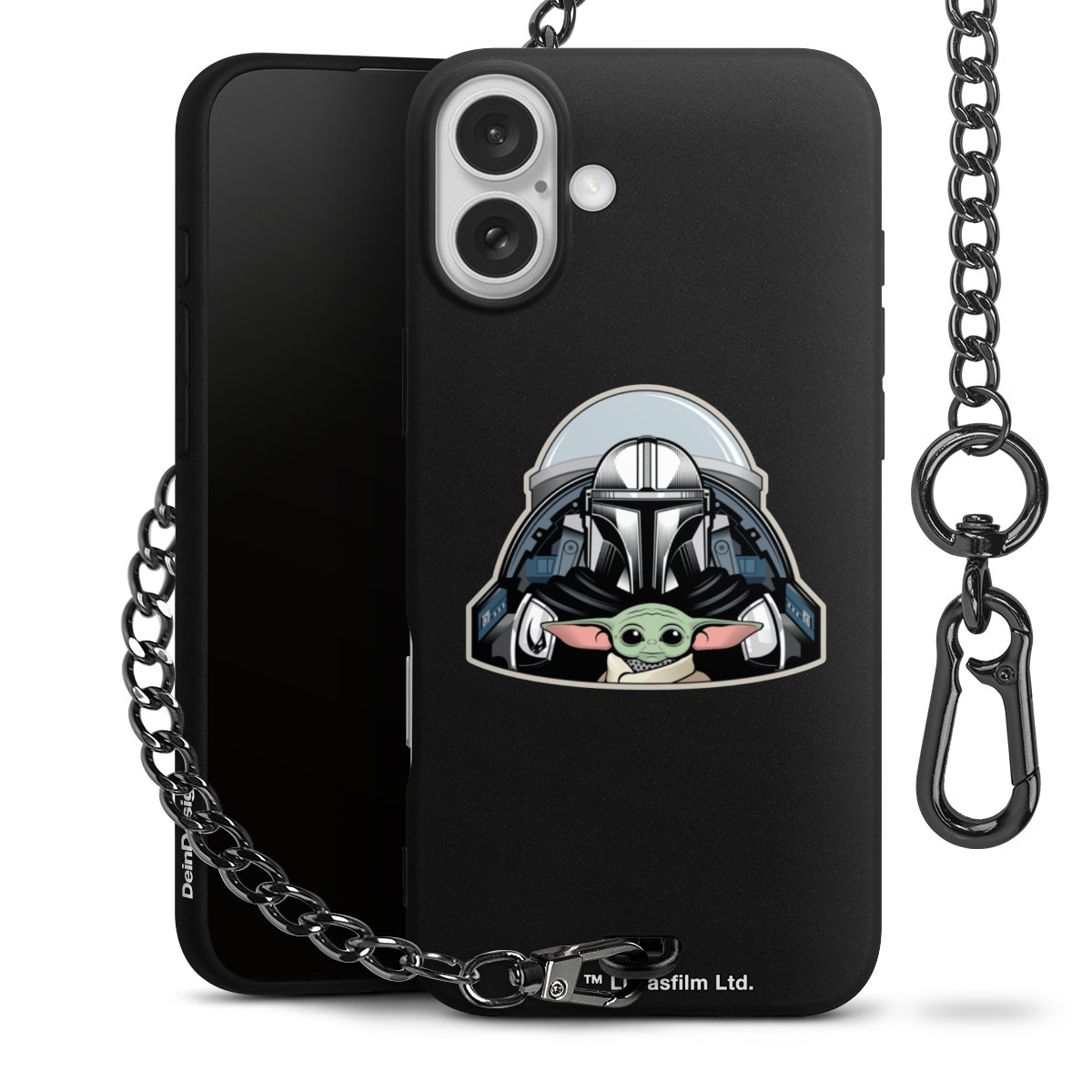 Die mattschwarze Silikon-Handyhülle besteht aus robustem TPU (thermoplastisches Polyurethan). Sie ist flexibel und schützt Dein Smartphone vor Stößen und Kratzern. Die Kette sowie der Karabinerhaken sind aus Metall in Gunmetal-Optik gefertigt. Für dieses Produkt kommen ausschließlich TÜV-geprüfte Materialien zum Einsatz.
