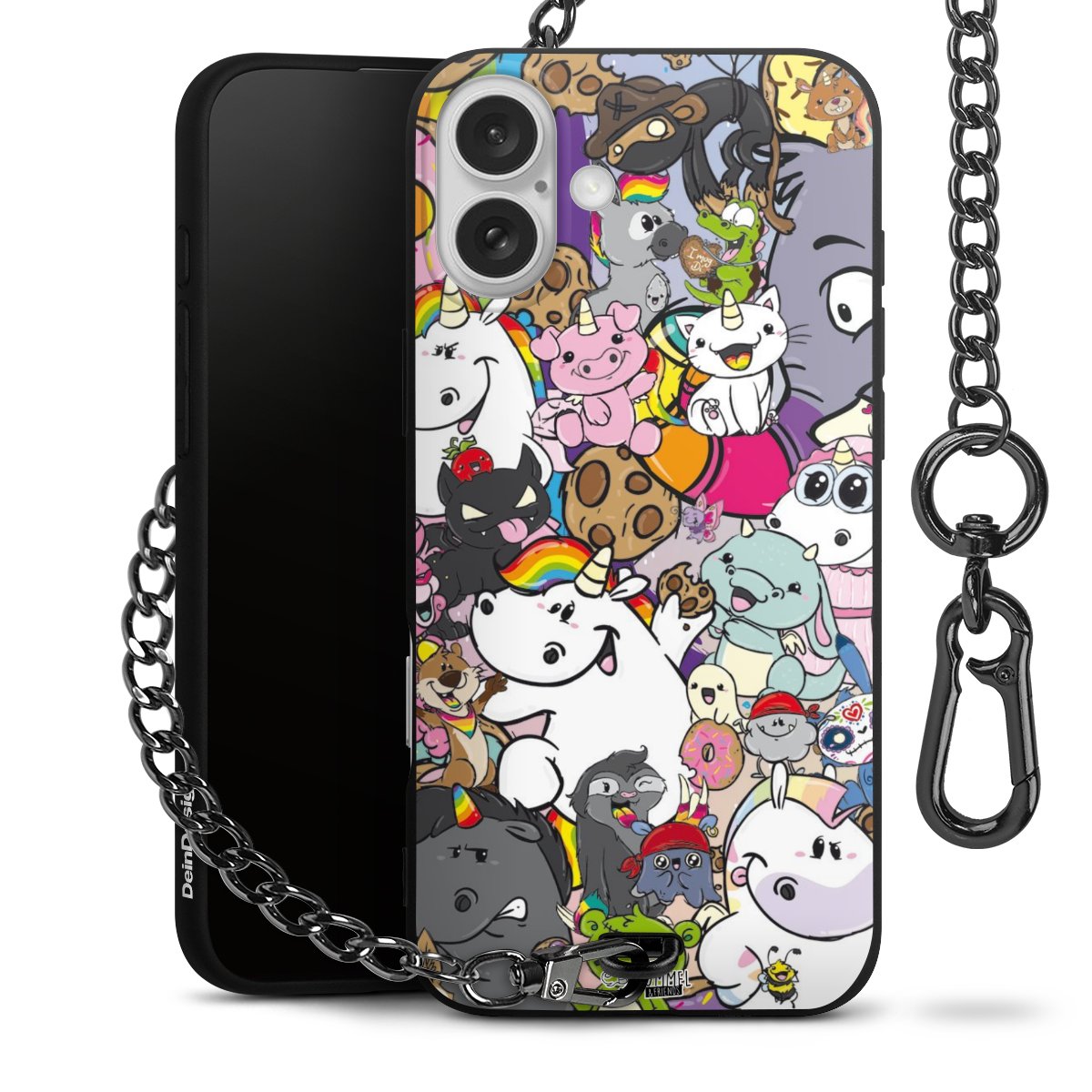 Die mattschwarze Silikon-Handyhülle besteht aus robustem TPU (thermoplastisches Polyurethan). Sie ist flexibel und schützt Dein Smartphone vor Stößen und Kratzern. Die Kette sowie der Karabinerhaken sind aus Metall in Gunmetal-Optik gefertigt. Für dieses Produkt kommen ausschließlich TÜV-geprüfte Materialien zum Einsatz.