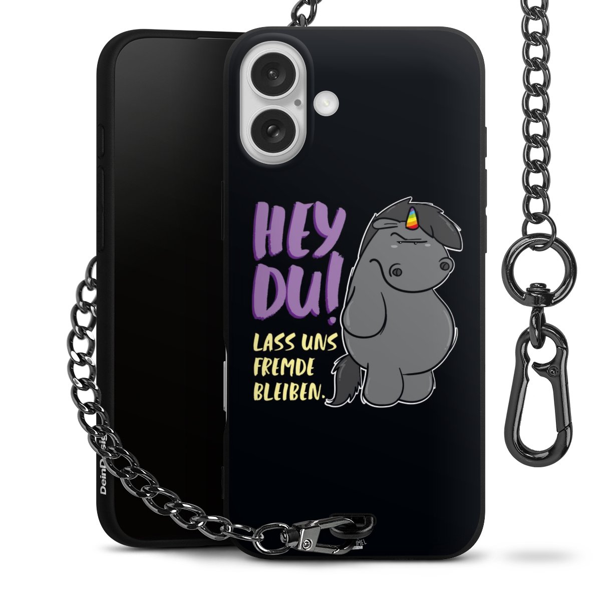 Die mattschwarze Silikon-Handyhülle besteht aus robustem TPU (thermoplastisches Polyurethan). Sie ist flexibel und schützt Dein Smartphone vor Stößen und Kratzern. Die Kette sowie der Karabinerhaken sind aus Metall in Gunmetal-Optik gefertigt. Für dieses Produkt kommen ausschließlich TÜV-geprüfte Materialien zum Einsatz.