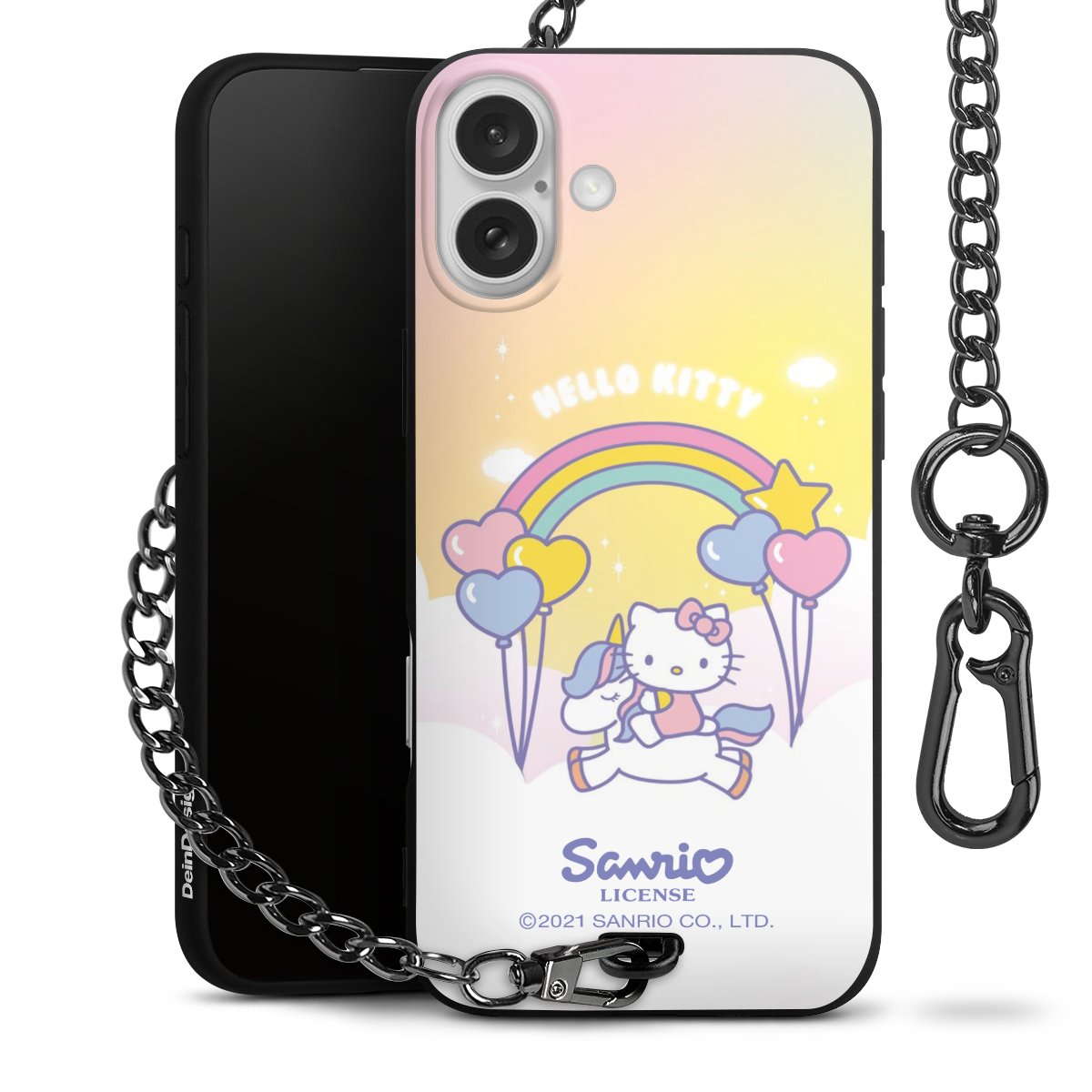 Die mattschwarze Silikon-Handyhülle besteht aus robustem TPU (thermoplastisches Polyurethan). Sie ist flexibel und schützt Dein Smartphone vor Stößen und Kratzern. Die Kette sowie der Karabinerhaken sind aus Metall in Gunmetal-Optik gefertigt. Für dieses Produkt kommen ausschließlich TÜV-geprüfte Materialien zum Einsatz.