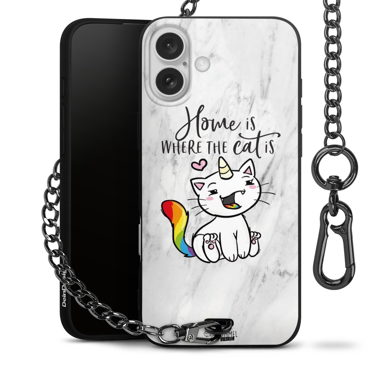 Die mattschwarze Silikon-Handyhülle besteht aus robustem TPU (thermoplastisches Polyurethan). Sie ist flexibel und schützt Dein Smartphone vor Stößen und Kratzern. Die Kette sowie der Karabinerhaken sind aus Metall in Gunmetal-Optik gefertigt. Für dieses Produkt kommen ausschließlich TÜV-geprüfte Materialien zum Einsatz.