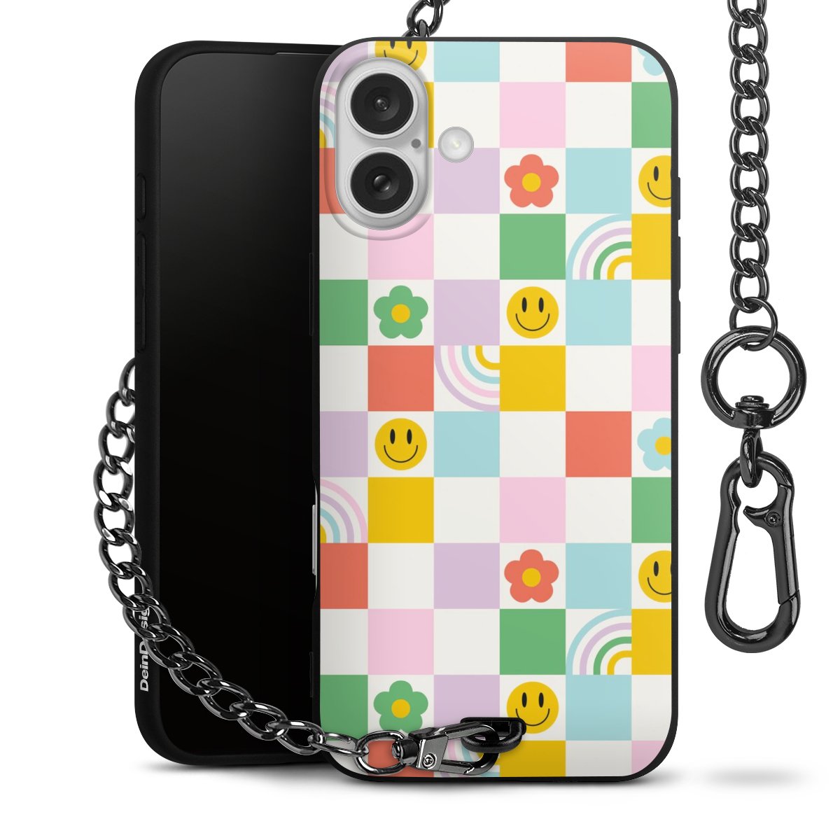 Die mattschwarze Silikon-Handyhülle besteht aus robustem TPU (thermoplastisches Polyurethan). Sie ist flexibel und schützt Dein Smartphone vor Stößen und Kratzern. Die Kette sowie der Karabinerhaken sind aus Metall in Gunmetal-Optik gefertigt. Für dieses Produkt kommen ausschließlich TÜV-geprüfte Materialien zum Einsatz.