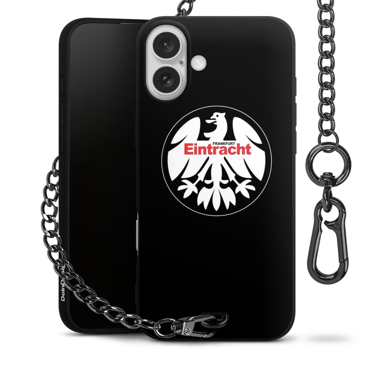 • Mattschwarze Handyhülle mit Metallkette