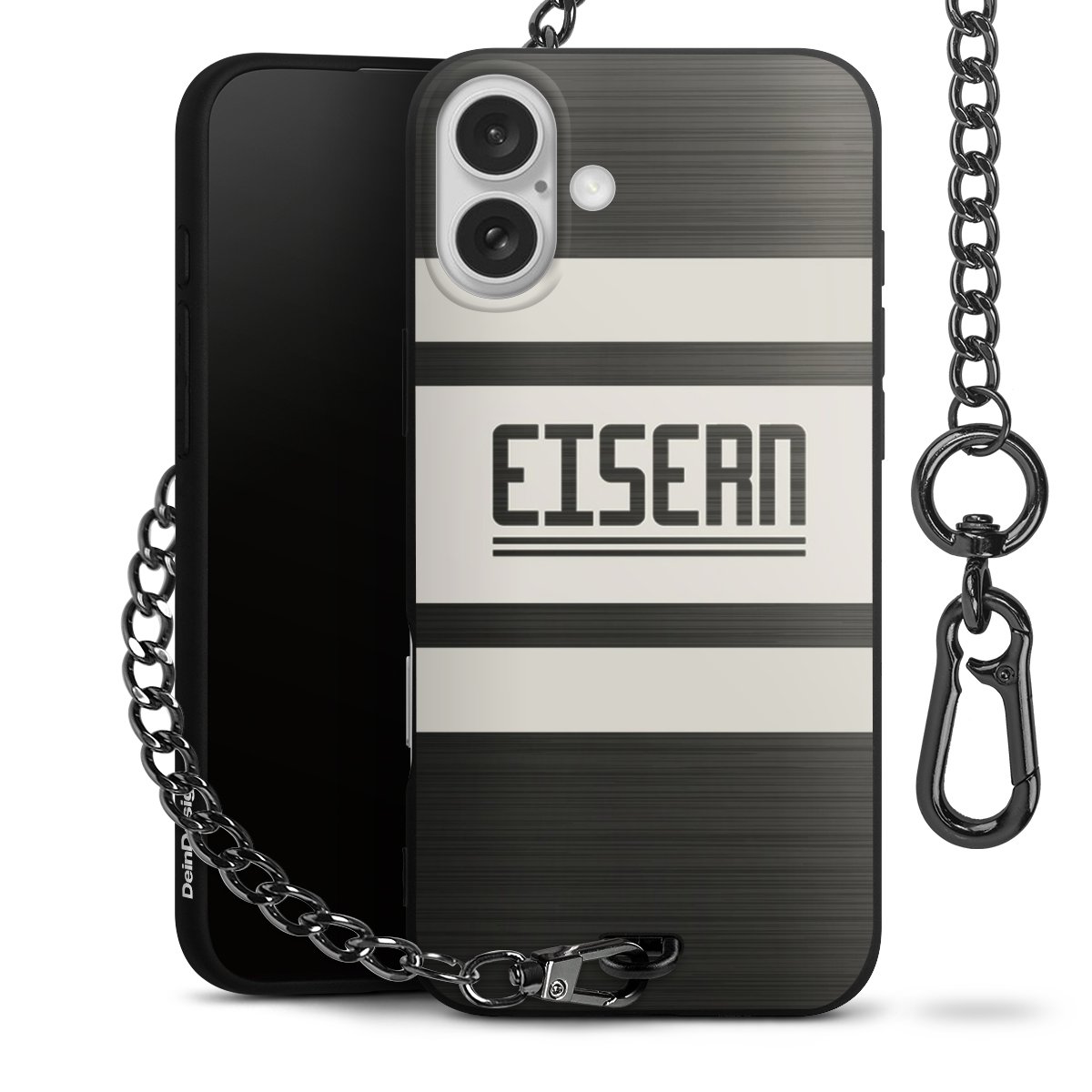 Die mattschwarze Silikon-Handyhülle besteht aus robustem TPU (thermoplastisches Polyurethan). Sie ist flexibel und schützt Dein Smartphone vor Stößen und Kratzern. Die Kette sowie der Karabinerhaken sind aus Metall in Gunmetal-Optik gefertigt. Für dieses Produkt kommen ausschließlich TÜV-geprüfte Materialien zum Einsatz.