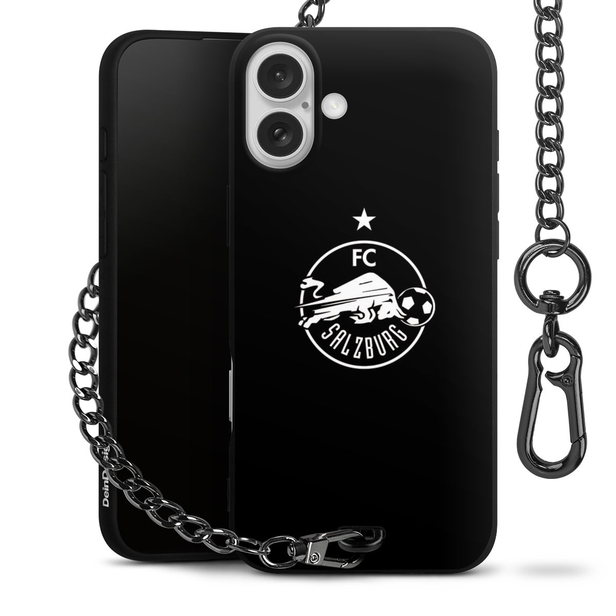 Die mattschwarze Silikon-Handyhülle besteht aus robustem TPU (thermoplastisches Polyurethan). Sie ist flexibel und schützt Dein Smartphone vor Stößen und Kratzern. Die Kette sowie der Karabinerhaken sind aus Metall in Gunmetal-Optik gefertigt. Für dieses Produkt kommen ausschließlich TÜV-geprüfte Materialien zum Einsatz.