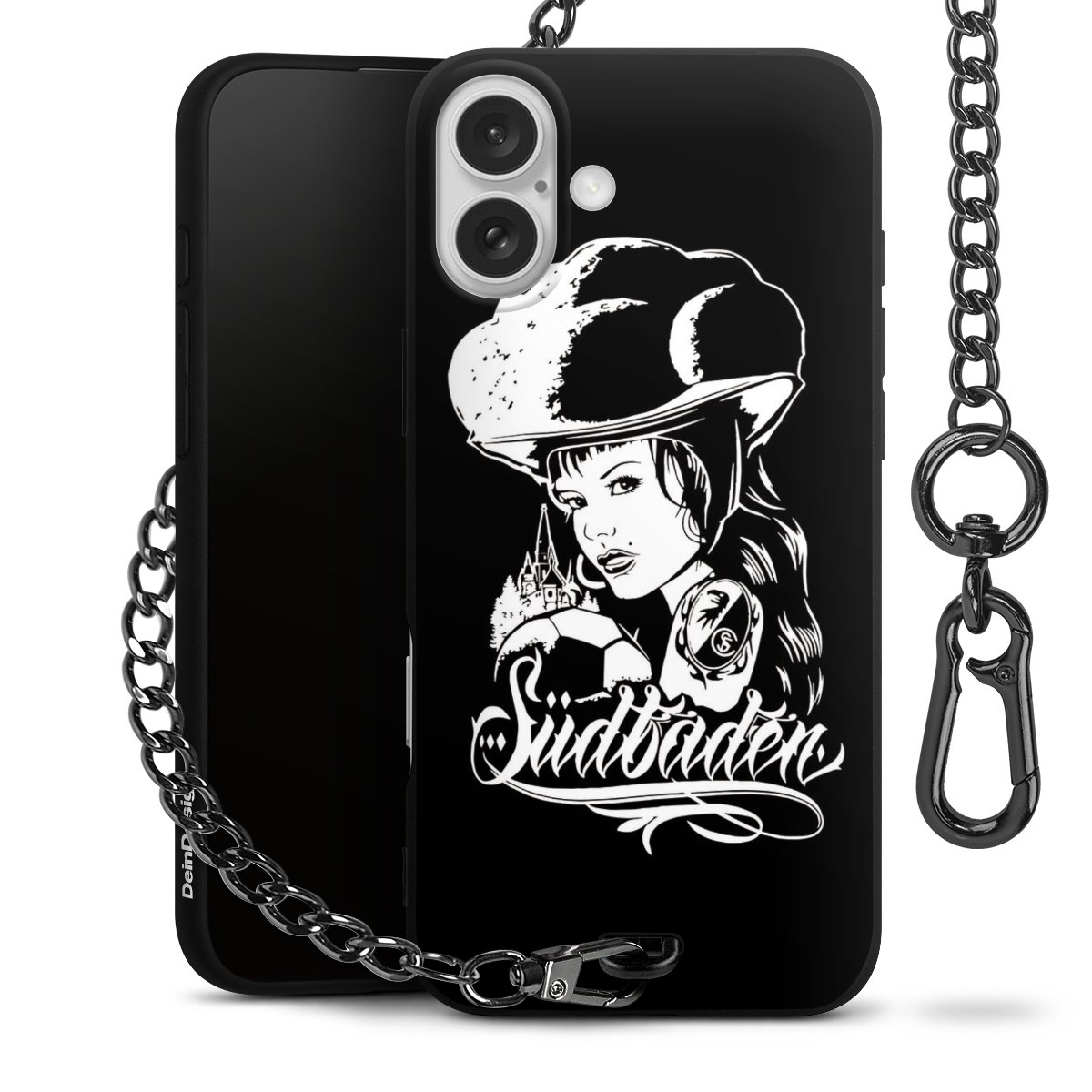 Die mattschwarze Silikon-Handyhülle besteht aus robustem TPU (thermoplastisches Polyurethan). Sie ist flexibel und schützt Dein Smartphone vor Stößen und Kratzern. Die Kette sowie der Karabinerhaken sind aus Metall in Gunmetal-Optik gefertigt. Für dieses Produkt kommen ausschließlich TÜV-geprüfte Materialien zum Einsatz.