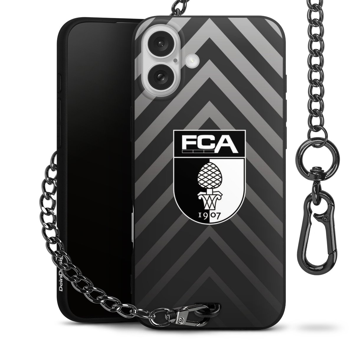 Die mattschwarze Silikon-Handyhülle besteht aus robustem TPU (thermoplastisches Polyurethan). Sie ist flexibel und schützt Dein Smartphone vor Stößen und Kratzern. Die Kette sowie der Karabinerhaken sind aus Metall in Gunmetal-Optik gefertigt. Für dieses Produkt kommen ausschließlich TÜV-geprüfte Materialien zum Einsatz.