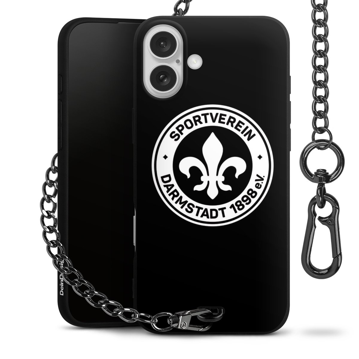 Die mattschwarze Silikon-Handyhülle besteht aus robustem TPU (thermoplastisches Polyurethan). Sie ist flexibel und schützt Dein Smartphone vor Stößen und Kratzern. Die Kette sowie der Karabinerhaken sind aus Metall in Gunmetal-Optik gefertigt. Für dieses Produkt kommen ausschließlich TÜV-geprüfte Materialien zum Einsatz.