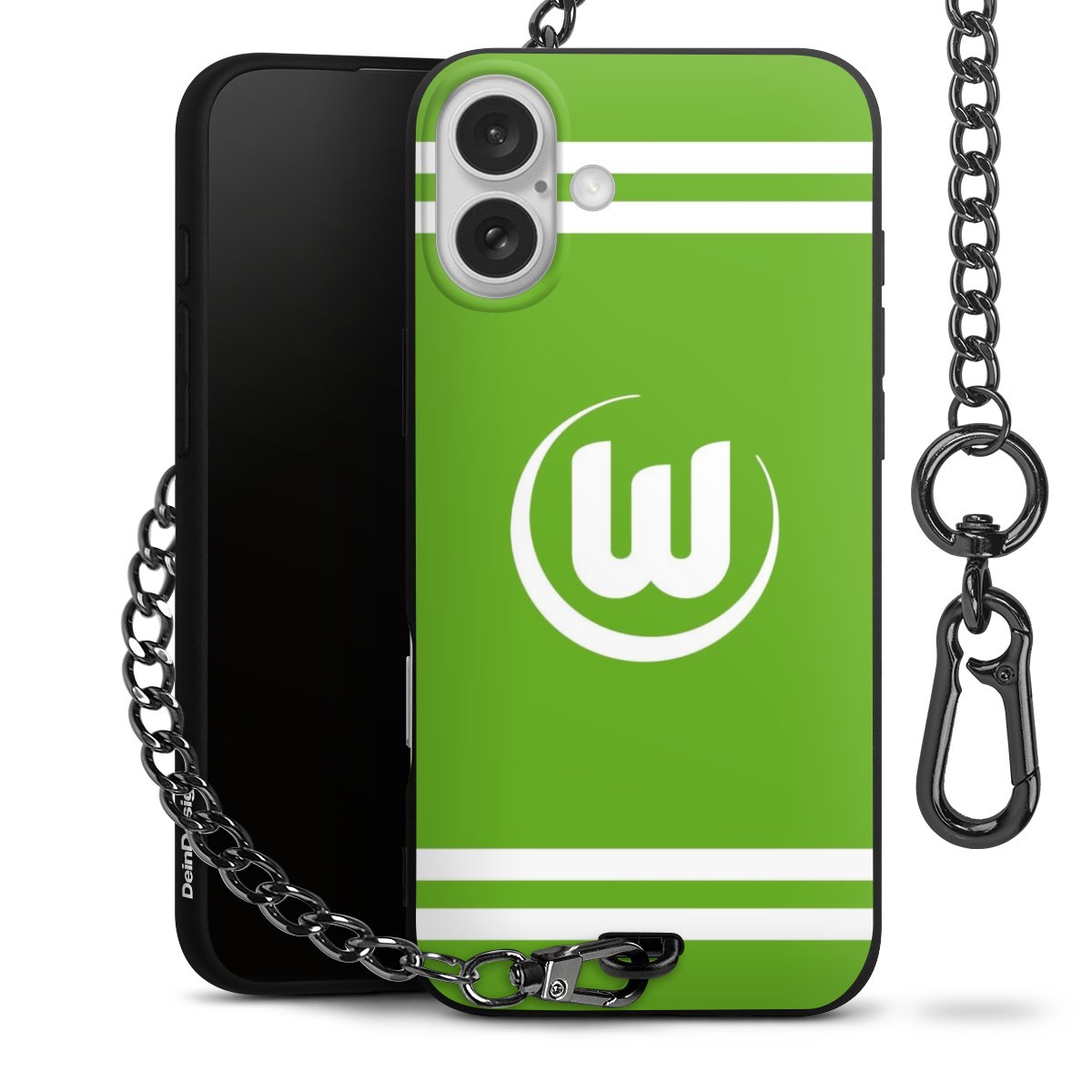 Die mattschwarze Silikon-Handyhülle besteht aus robustem TPU (thermoplastisches Polyurethan). Sie ist flexibel und schützt Dein Smartphone vor Stößen und Kratzern. Die Kette sowie der Karabinerhaken sind aus Metall in Gunmetal-Optik gefertigt. Für dieses Produkt kommen ausschließlich TÜV-geprüfte Materialien zum Einsatz.