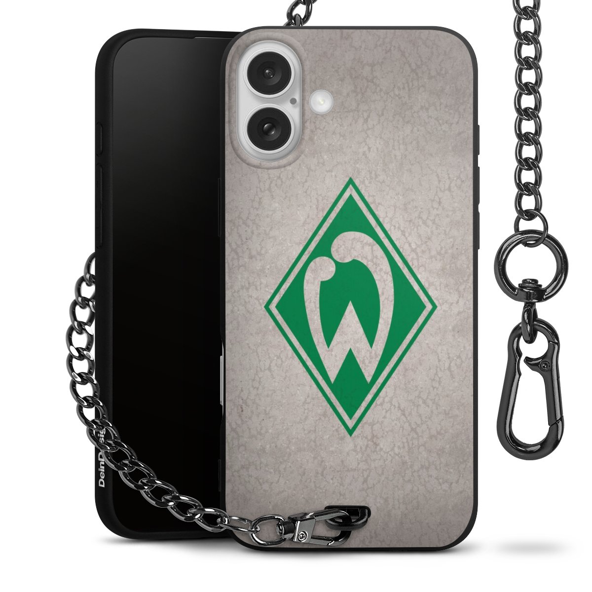 Die mattschwarze Silikon-Handyhülle besteht aus robustem TPU (thermoplastisches Polyurethan). Sie ist flexibel und schützt Dein Smartphone vor Stößen und Kratzern. Die Kette sowie der Karabinerhaken sind aus Metall in Gunmetal-Optik gefertigt. Für dieses Produkt kommen ausschließlich TÜV-geprüfte Materialien zum Einsatz.