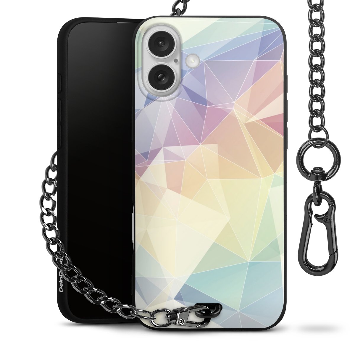 Die mattschwarze Silikon-Handyhülle besteht aus robustem TPU (thermoplastisches Polyurethan). Sie ist flexibel und schützt Dein Smartphone vor Stößen und Kratzern. Die Kette sowie der Karabinerhaken sind aus Metall in Gunmetal-Optik gefertigt. Für dieses Produkt kommen ausschließlich TÜV-geprüfte Materialien zum Einsatz.