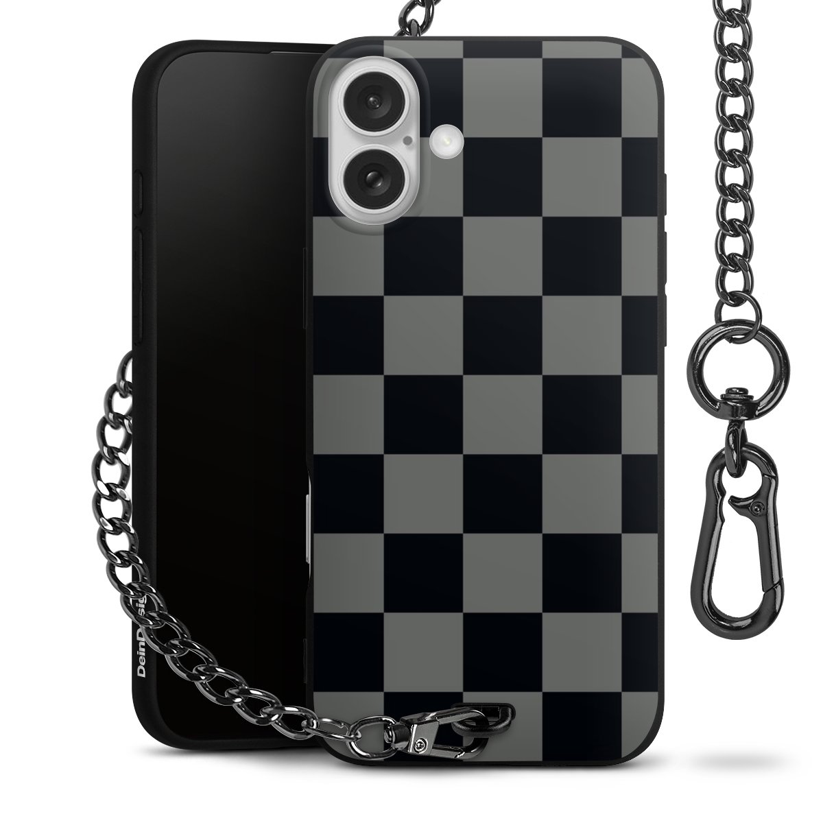 - Mattschwarze Handyhülle mit Metallkette