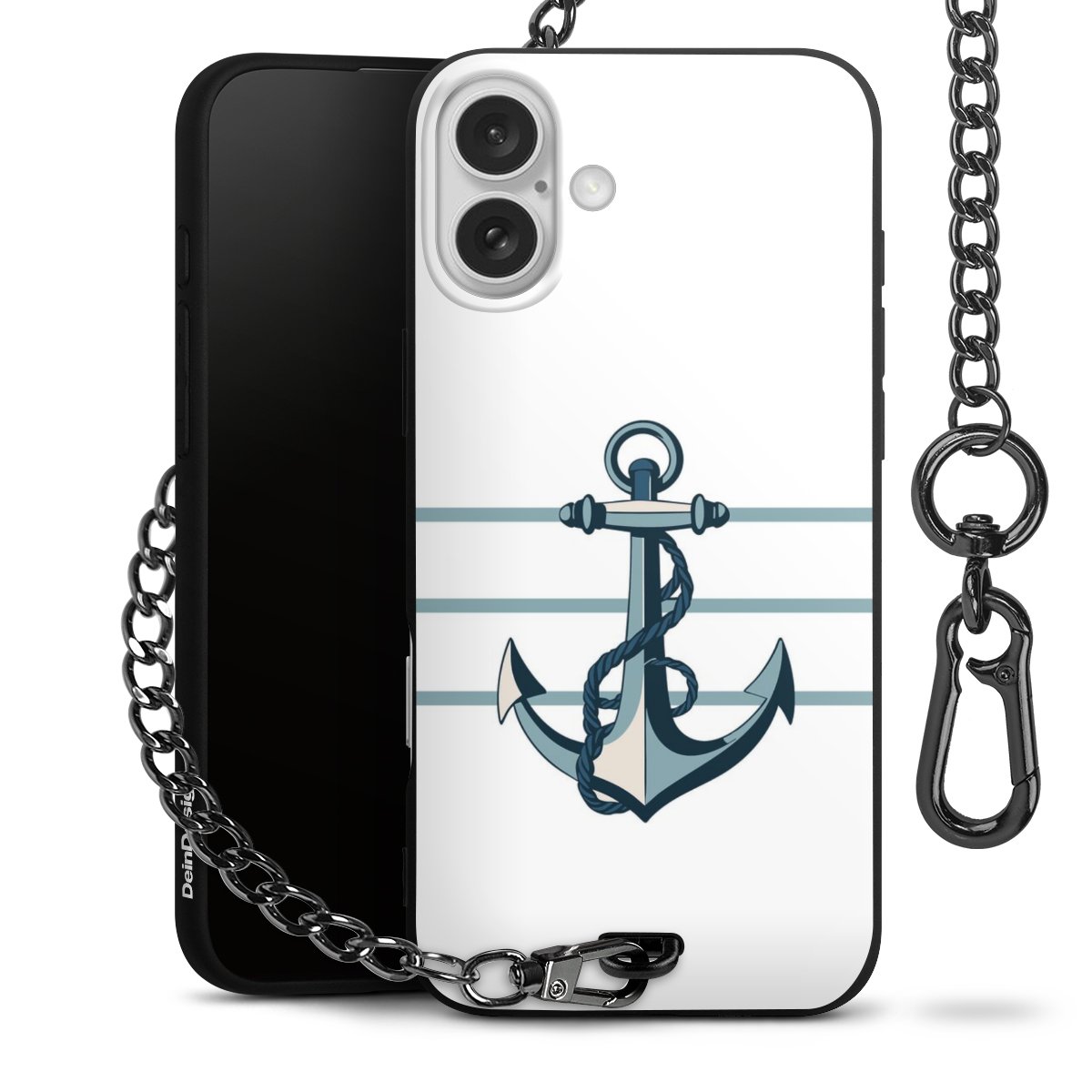 Die mattschwarze Silikon-Handyhülle besteht aus robustem TPU (thermoplastisches Polyurethan). Sie ist flexibel und schützt Dein Smartphone vor Stößen und Kratzern. Die Kette sowie der Karabinerhaken sind aus Metall in Gunmetal-Optik gefertigt. Für dieses Produkt kommen ausschließlich TÜV-geprüfte Materialien zum Einsatz.