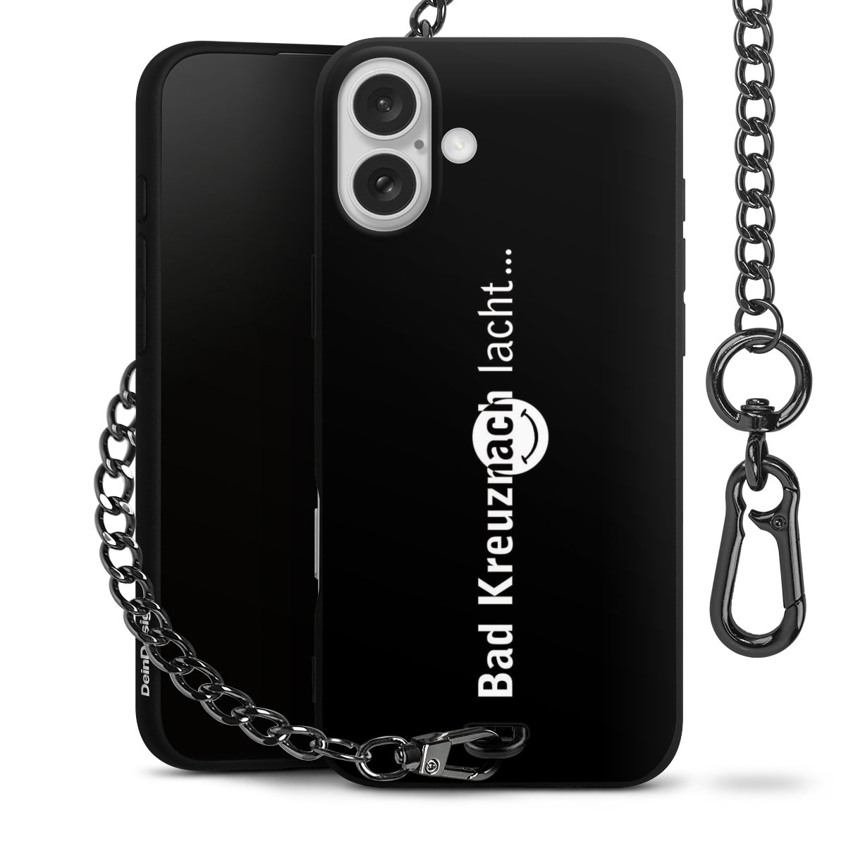 Die mattschwarze Silikon-Handyhülle besteht aus robustem TPU (thermoplastisches Polyurethan). Sie ist flexibel und schützt Dein Smartphone vor Stößen und Kratzern. Die Kette sowie der Karabinerhaken sind aus Metall in Gunmetal-Optik gefertigt. Für dieses Produkt kommen ausschließlich TÜV-geprüfte Materialien zum Einsatz.