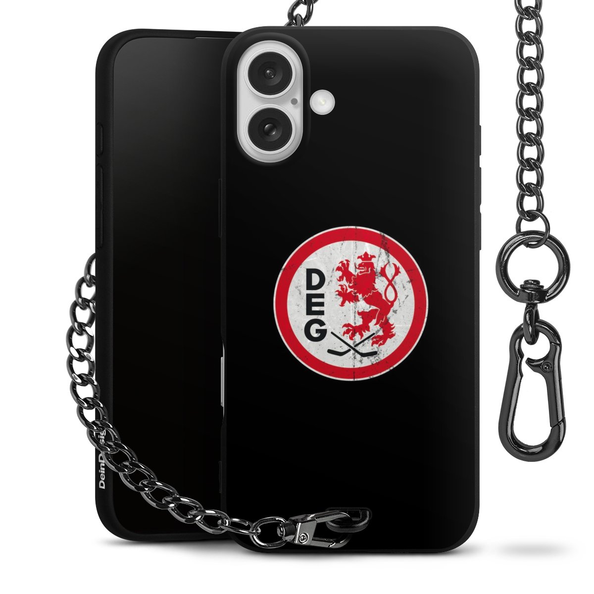 Die mattschwarze Silikon-Handyhülle besteht aus robustem TPU (thermoplastisches Polyurethan). Sie ist flexibel und schützt Dein Smartphone vor Stößen und Kratzern. Die Kette sowie der Karabinerhaken sind aus Metall in Gunmetal-Optik gefertigt. Für dieses Produkt kommen ausschließlich TÜV-geprüfte Materialien zum Einsatz.