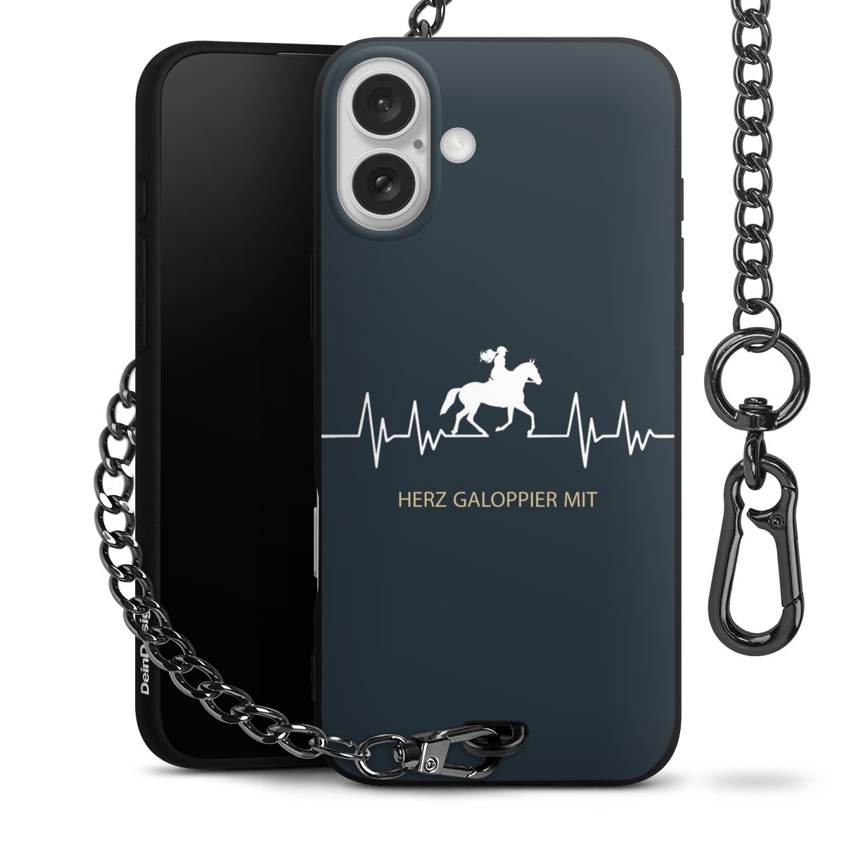 - Mattschwarze Handyhülle mit Metallkette