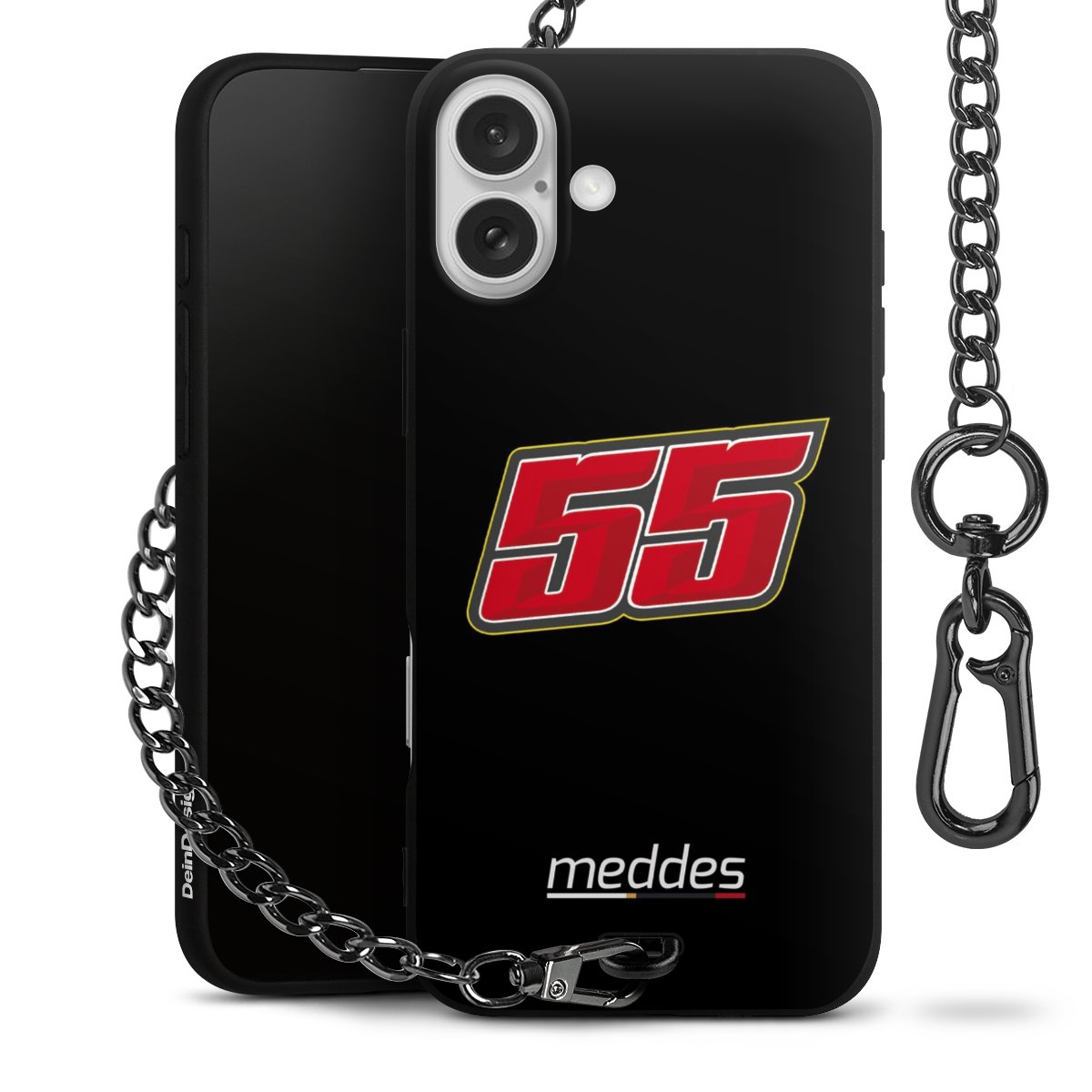 • Mattschwarze Handyhülle mit Metallkette
