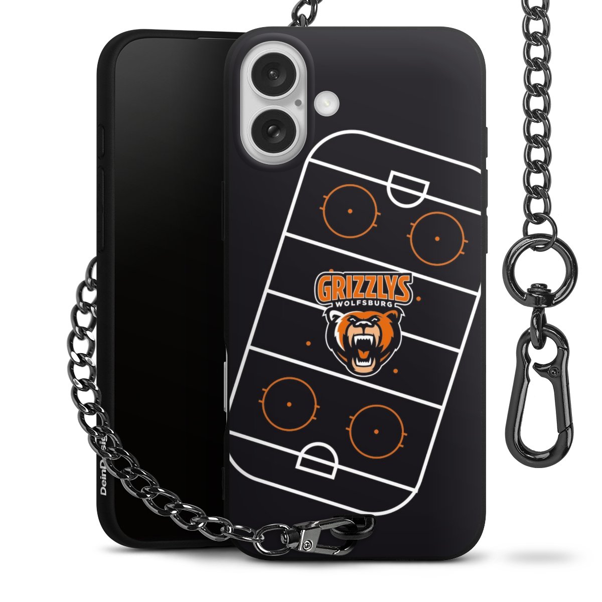 Die mattschwarze Silikon-Handyhülle besteht aus robustem TPU (thermoplastisches Polyurethan). Sie ist flexibel und schützt Dein Smartphone vor Stößen und Kratzern. Die Kette sowie der Karabinerhaken sind aus Metall in Gunmetal-Optik gefertigt. Für dieses Produkt kommen ausschließlich TÜV-geprüfte Materialien zum Einsatz.