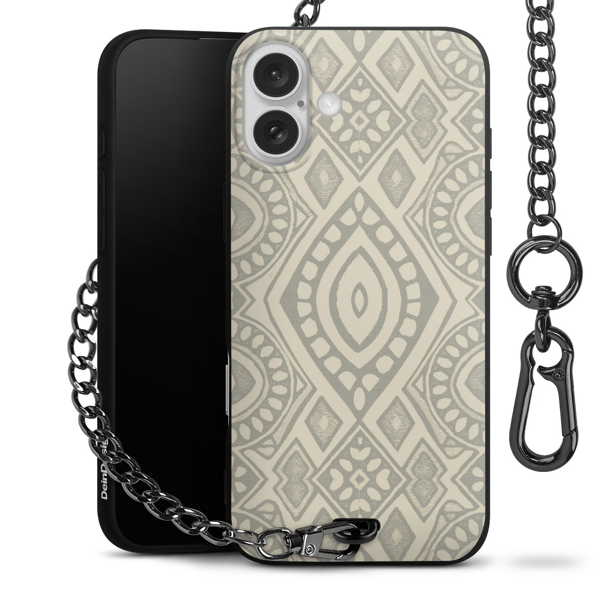Die mattschwarze Silikon-Handyhülle besteht aus robustem TPU (thermoplastisches Polyurethan). Sie ist flexibel und schützt Dein Smartphone vor Stößen und Kratzern. Die Kette sowie der Karabinerhaken sind aus Metall in Gunmetal-Optik gefertigt. Für dieses Produkt kommen ausschließlich TÜV-geprüfte Materialien zum Einsatz.