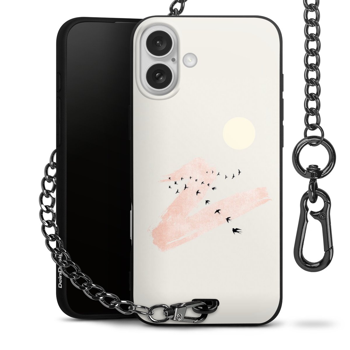 • Mattschwarze Handyhülle mit Metallkette