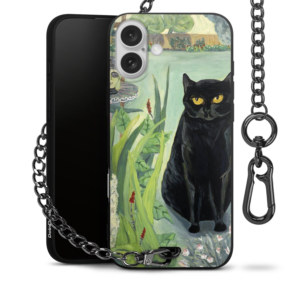- Mattschwarze Handyhülle mit Metallkette