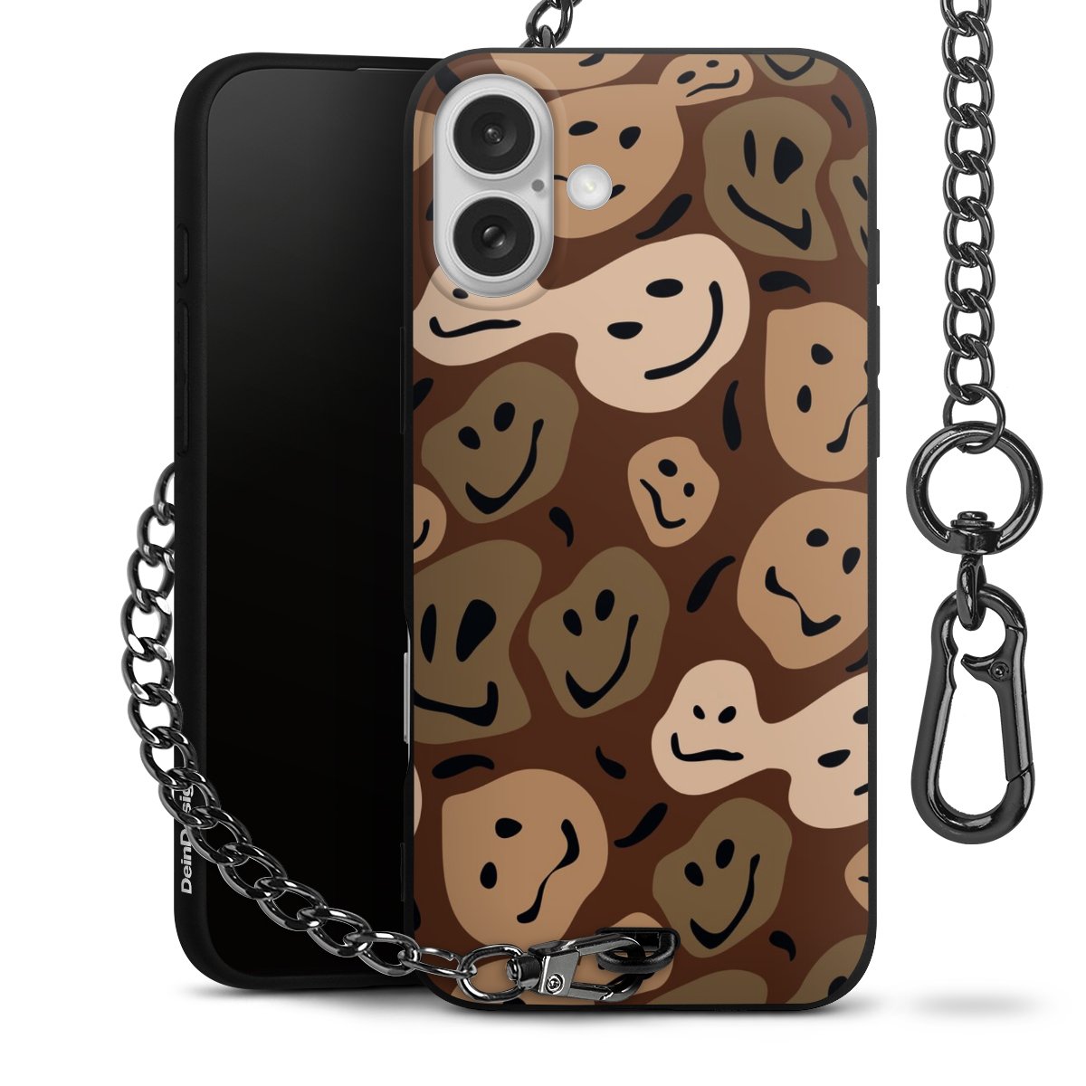 Die mattschwarze Silikon-Handyhülle besteht aus robustem TPU (thermoplastisches Polyurethan). Sie ist flexibel und schützt Dein Smartphone vor Stößen und Kratzern. Die Kette sowie der Karabinerhaken sind aus Metall in Gunmetal-Optik gefertigt. Für dieses Produkt kommen ausschließlich TÜV-geprüfte Materialien zum Einsatz.