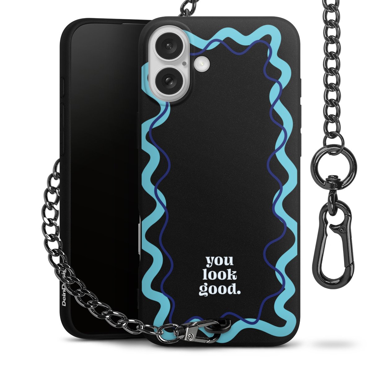 Die mattschwarze Silikon-Handyhülle besteht aus robustem TPU (thermoplastisches Polyurethan). Sie ist flexibel und schützt Dein Smartphone vor Stößen und Kratzern. Die Kette sowie der Karabinerhaken sind aus Metall in Gunmetal-Optik gefertigt. Für dieses Produkt kommen ausschließlich TÜV-geprüfte Materialien zum Einsatz.