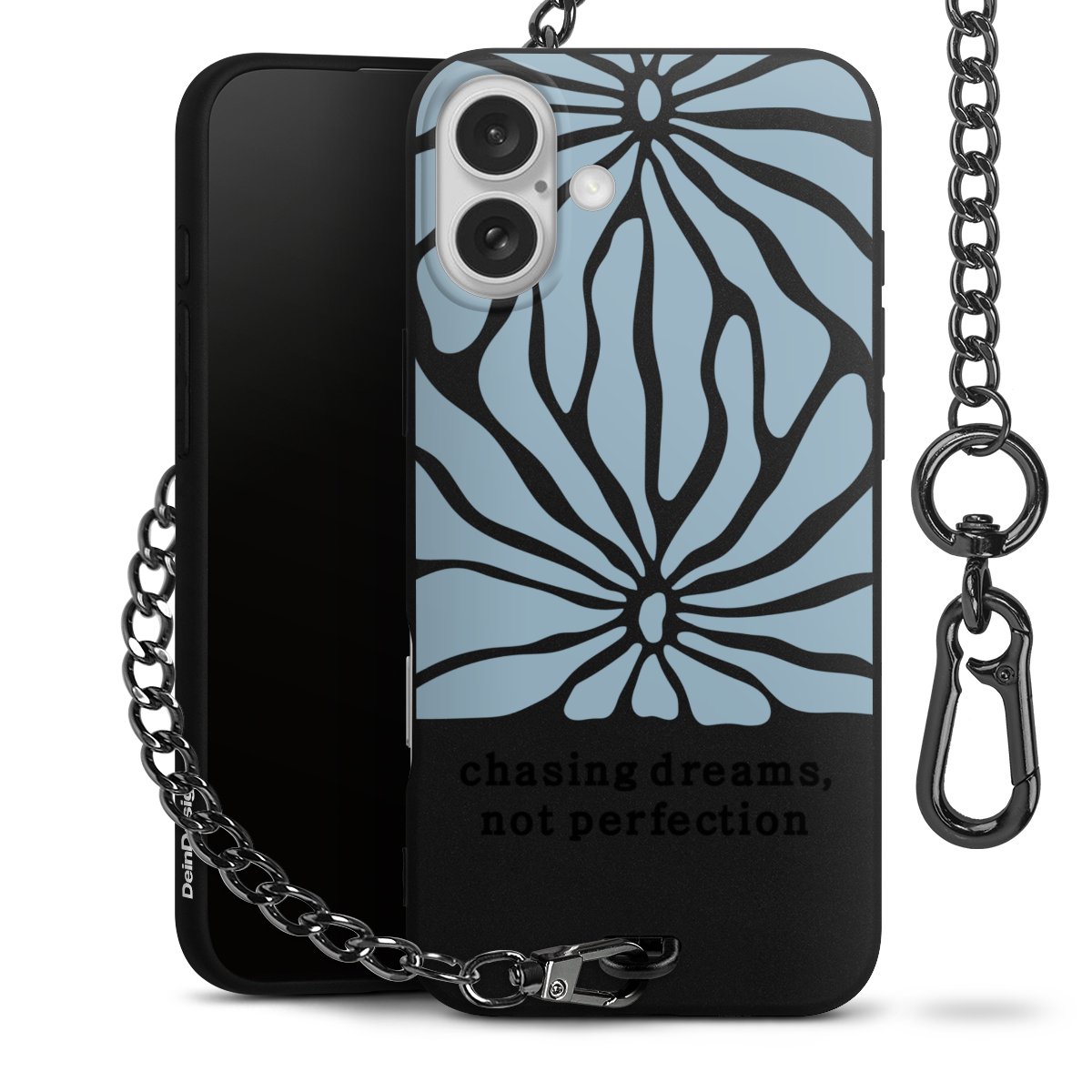 - Mattschwarze Handyhülle mit Metallkette