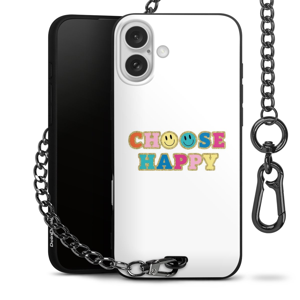 Die mattschwarze Silikon-Handyhülle besteht aus robustem TPU (thermoplastisches Polyurethan). Sie ist flexibel und schützt Dein Smartphone vor Stößen und Kratzern. Die Kette sowie der Karabinerhaken sind aus Metall in Gunmetal-Optik gefertigt. Für dieses Produkt kommen ausschließlich TÜV-geprüfte Materialien zum Einsatz.