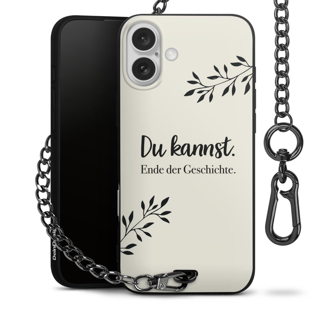 Die mattschwarze Silikon-Handyhülle besteht aus robustem TPU (thermoplastisches Polyurethan). Sie ist flexibel und schützt Dein Smartphone vor Stößen und Kratzern. Die Kette sowie der Karabinerhaken sind aus Metall in Gunmetal-Optik gefertigt. Für dieses Produkt kommen ausschließlich TÜV-geprüfte Materialien zum Einsatz.