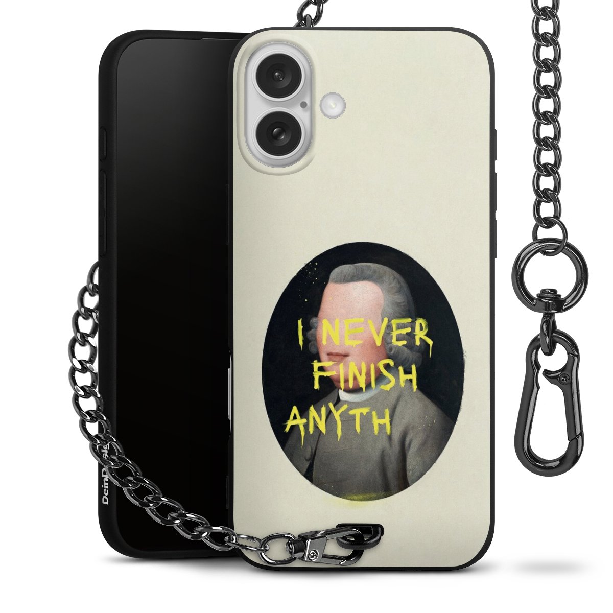 • Mattschwarze Handyhülle mit Metallkette