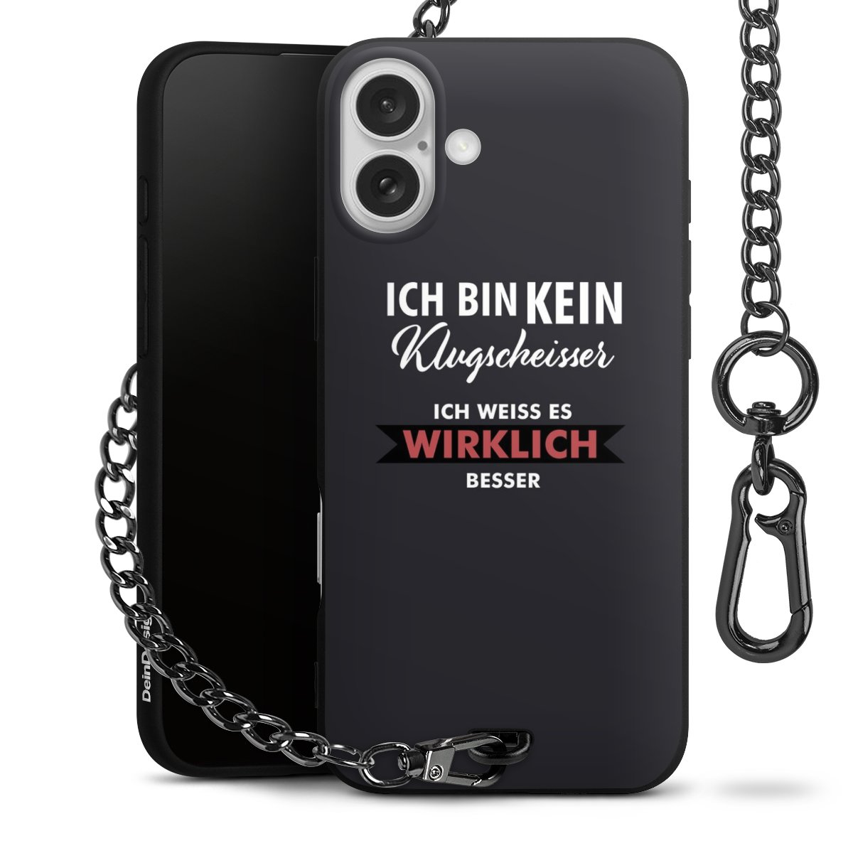 • Mattschwarze Handyhülle mit Metallkette