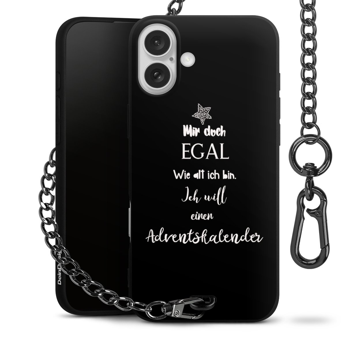 Die mattschwarze Silikon-Handyhülle besteht aus robustem TPU (thermoplastisches Polyurethan). Sie ist flexibel und schützt Dein Smartphone vor Stößen und Kratzern. Die Kette sowie der Karabinerhaken sind aus Metall in Gunmetal-Optik gefertigt. Für dieses Produkt kommen ausschließlich TÜV-geprüfte Materialien zum Einsatz.