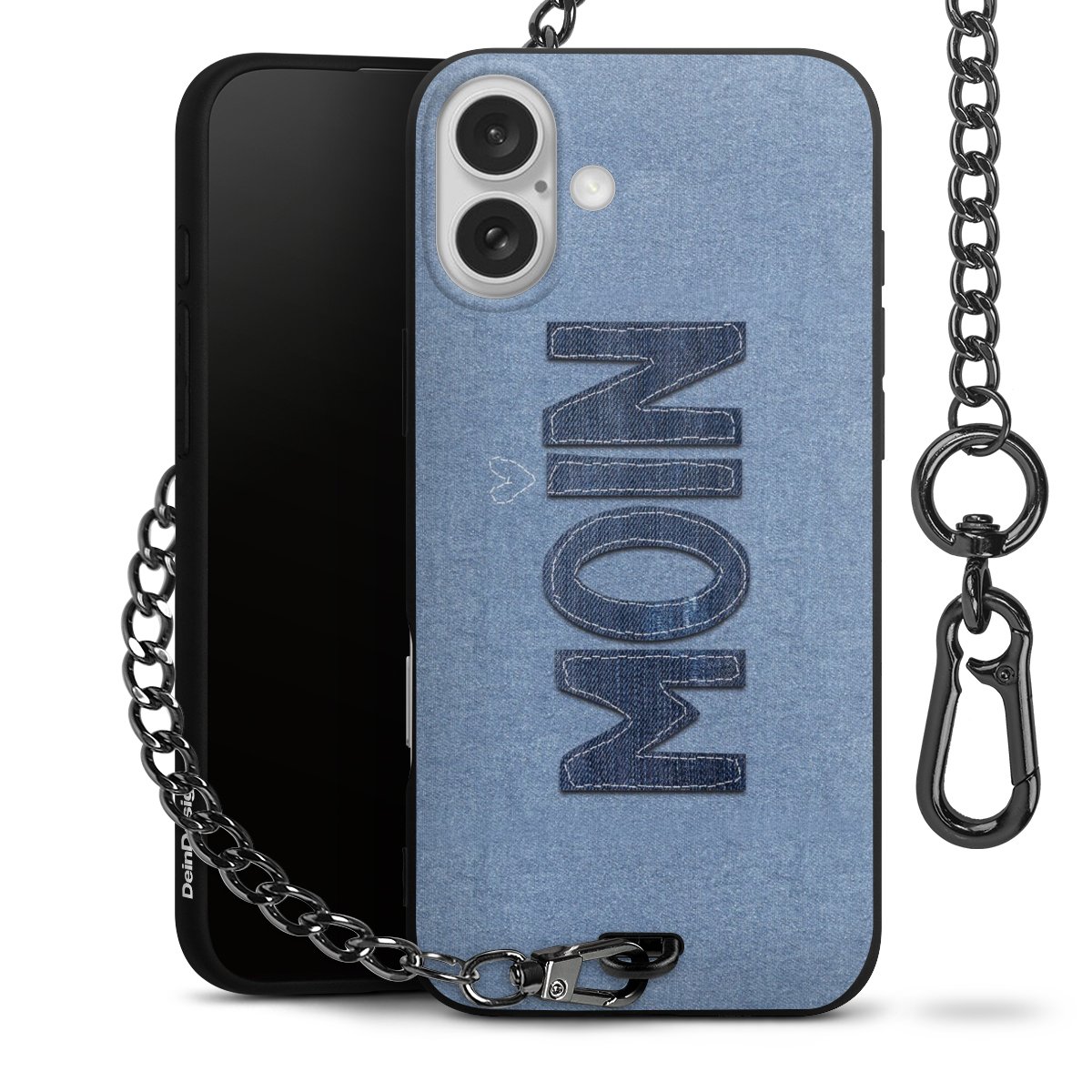 • Mattschwarze Handyhülle mit Metallkette