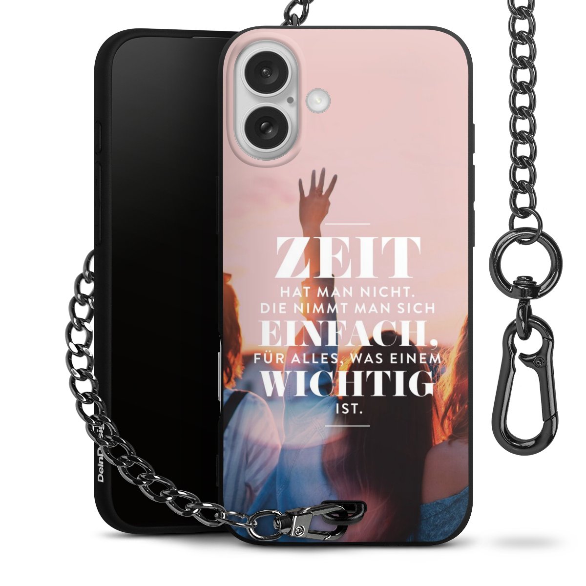 Die mattschwarze Silikon-Handyhülle besteht aus robustem TPU (thermoplastisches Polyurethan). Sie ist flexibel und schützt Dein Smartphone vor Stößen und Kratzern. Die Kette sowie der Karabinerhaken sind aus Metall in Gunmetal-Optik gefertigt. Für dieses Produkt kommen ausschließlich TÜV-geprüfte Materialien zum Einsatz.