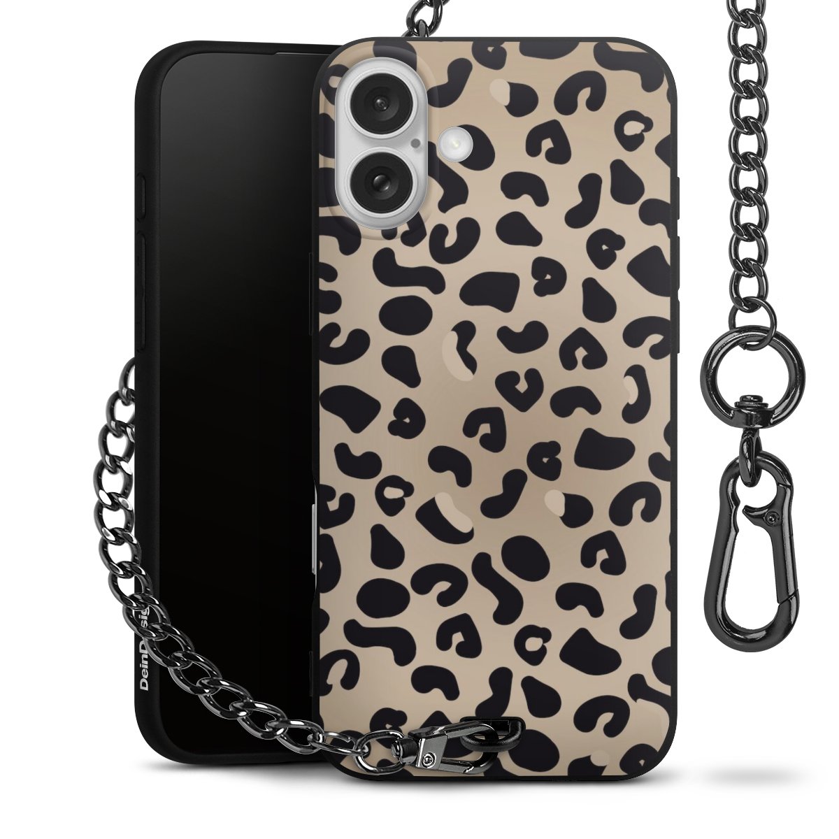 - Mattschwarze Handyhülle mit Metallkette
