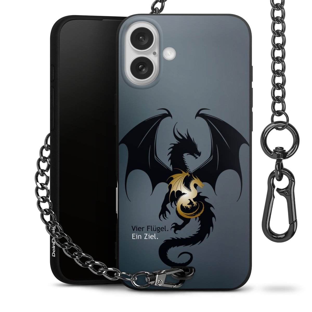 - Mattschwarze Handyhülle mit Metallkette