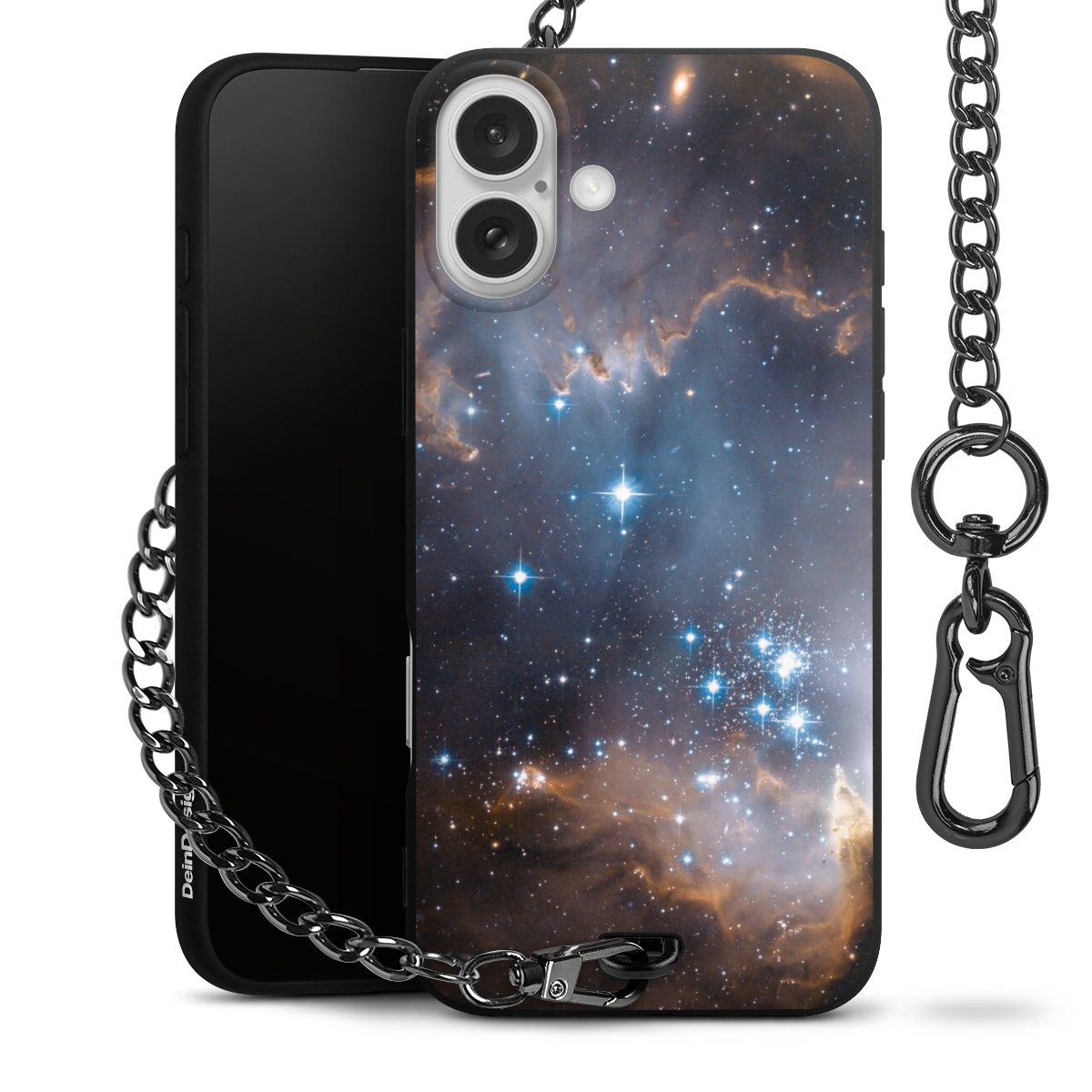 - Mattschwarze Handyhülle mit Metallkette