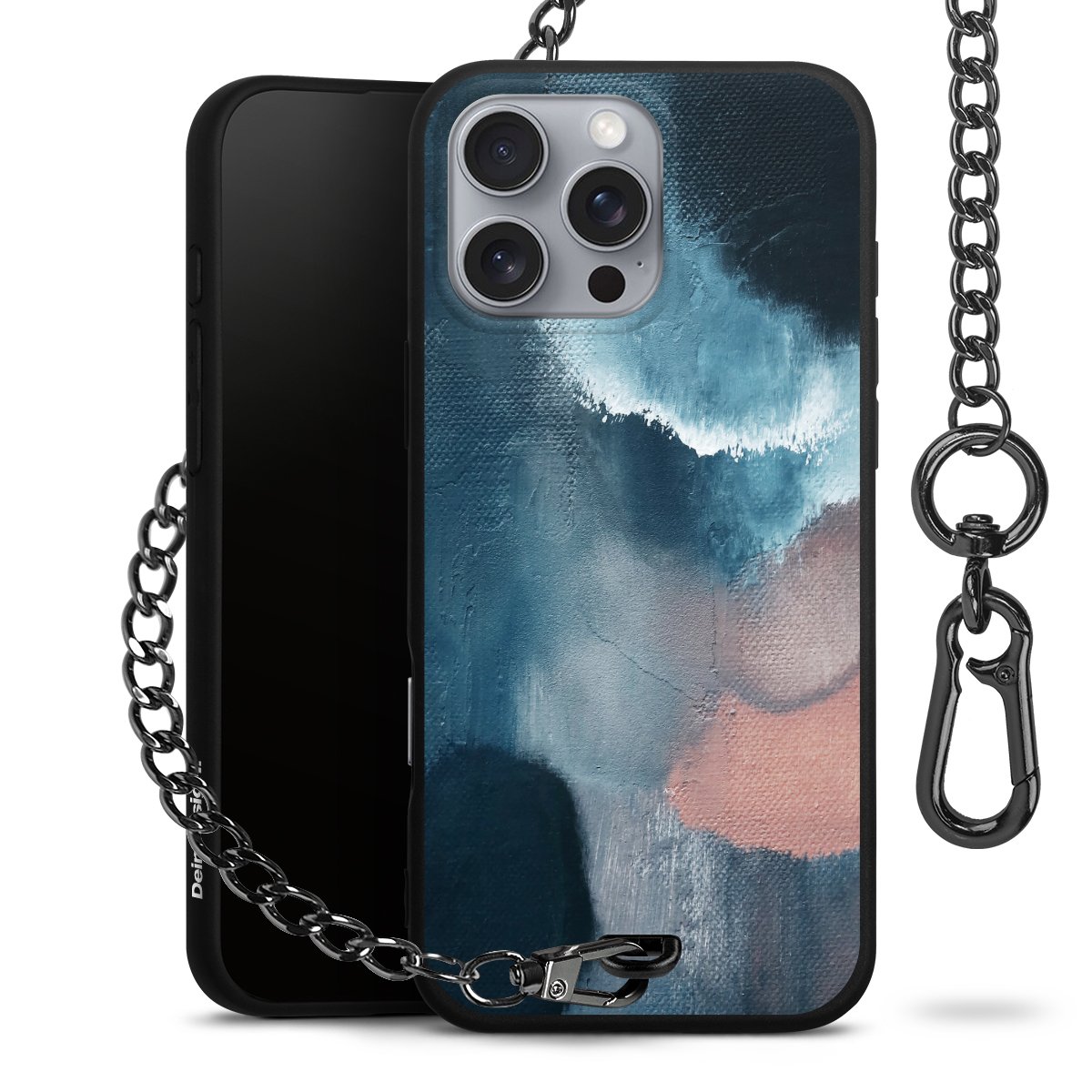 • Mattschwarze Handyhülle mit Metallkette