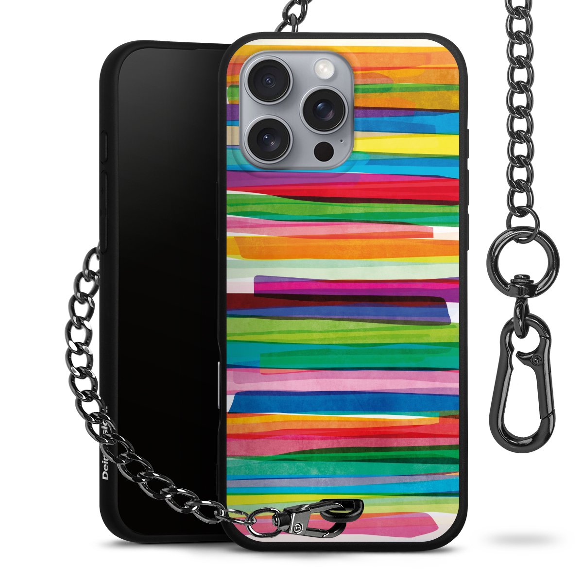 Die mattschwarze Silikon-Handyhülle besteht aus robustem TPU (thermoplastisches Polyurethan). Sie ist flexibel und schützt Dein Smartphone vor Stößen und Kratzern. Die Kette sowie der Karabinerhaken sind aus Metall in Gunmetal-Optik gefertigt. Für dieses Produkt kommen ausschließlich TÜV-geprüfte Materialien zum Einsatz.