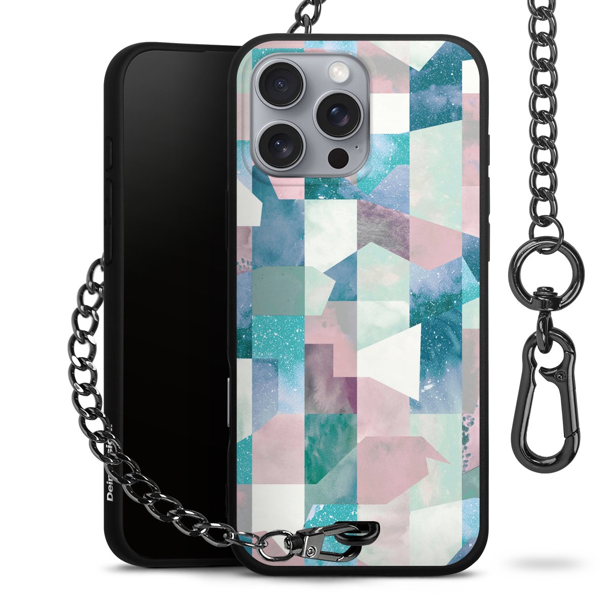 • Mattschwarze Handyhülle mit Metallkette