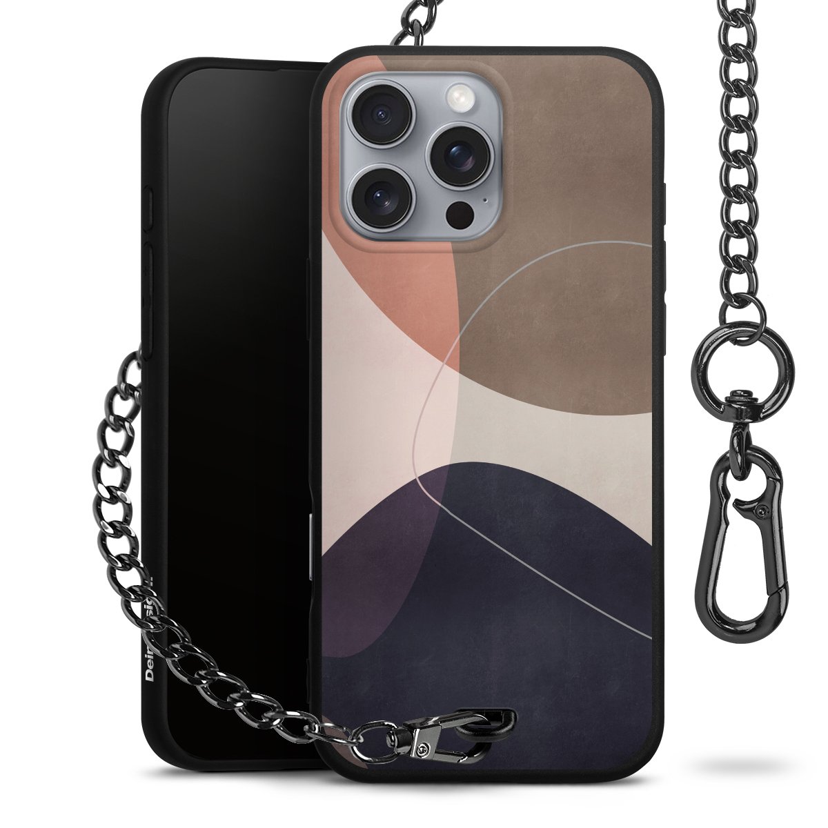 • Mattschwarze Handyhülle mit Metallkette