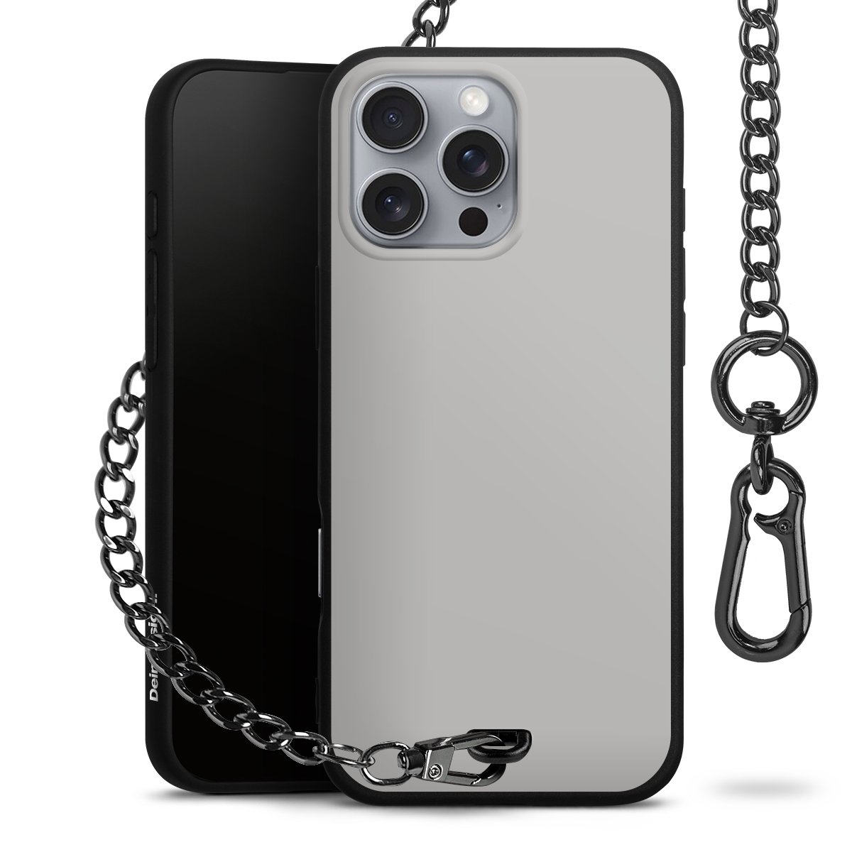 Die mattschwarze Silikon-Handyhülle besteht aus robustem TPU (thermoplastisches Polyurethan). Sie ist flexibel und schützt Dein Smartphone vor Stößen und Kratzern. Die Kette sowie der Karabinerhaken sind aus Metall in Gunmetal-Optik gefertigt. Für dieses Produkt kommen ausschließlich TÜV-geprüfte Materialien zum Einsatz.