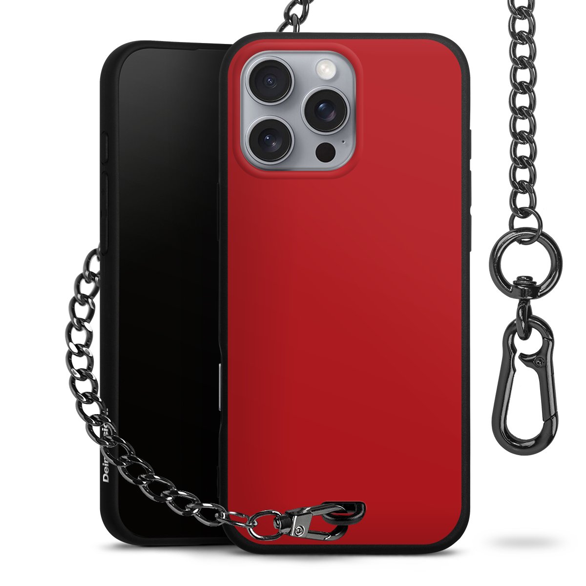 - Mattschwarze Handyhülle mit Metallkette