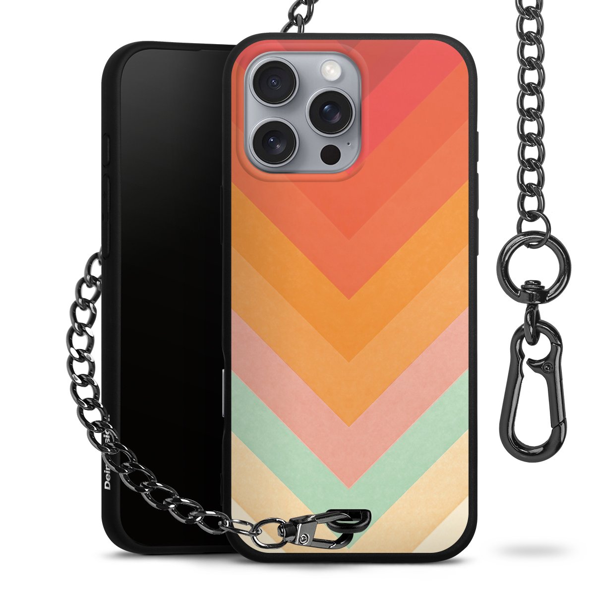 Die mattschwarze Silikon-Handyhülle besteht aus robustem TPU (thermoplastisches Polyurethan). Sie ist flexibel und schützt Dein Smartphone vor Stößen und Kratzern. Die Kette sowie der Karabinerhaken sind aus Metall in Gunmetal-Optik gefertigt. Für dieses Produkt kommen ausschließlich TÜV-geprüfte Materialien zum Einsatz.