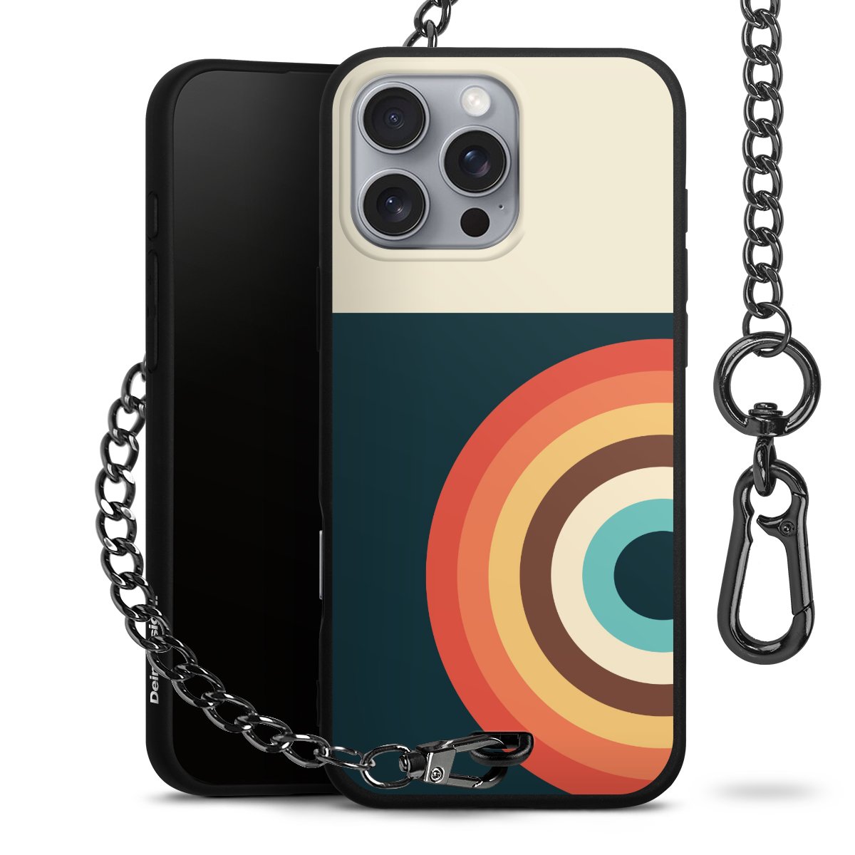 • Mattschwarze Handyhülle mit Metallkette