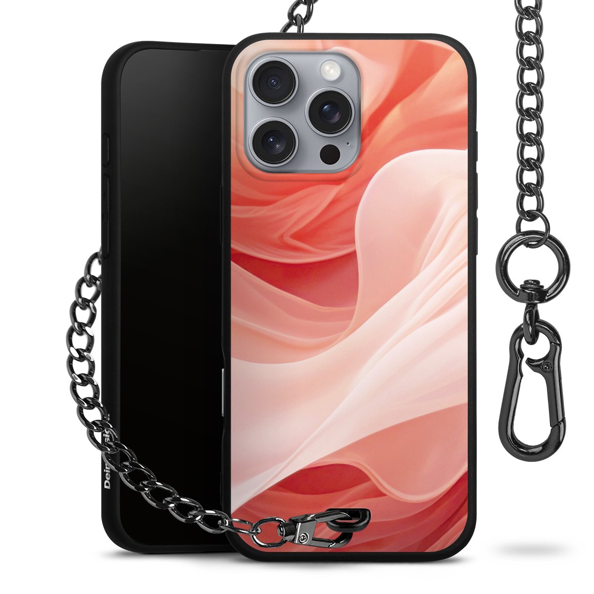 • Mattschwarze Handyhülle mit Metallkette