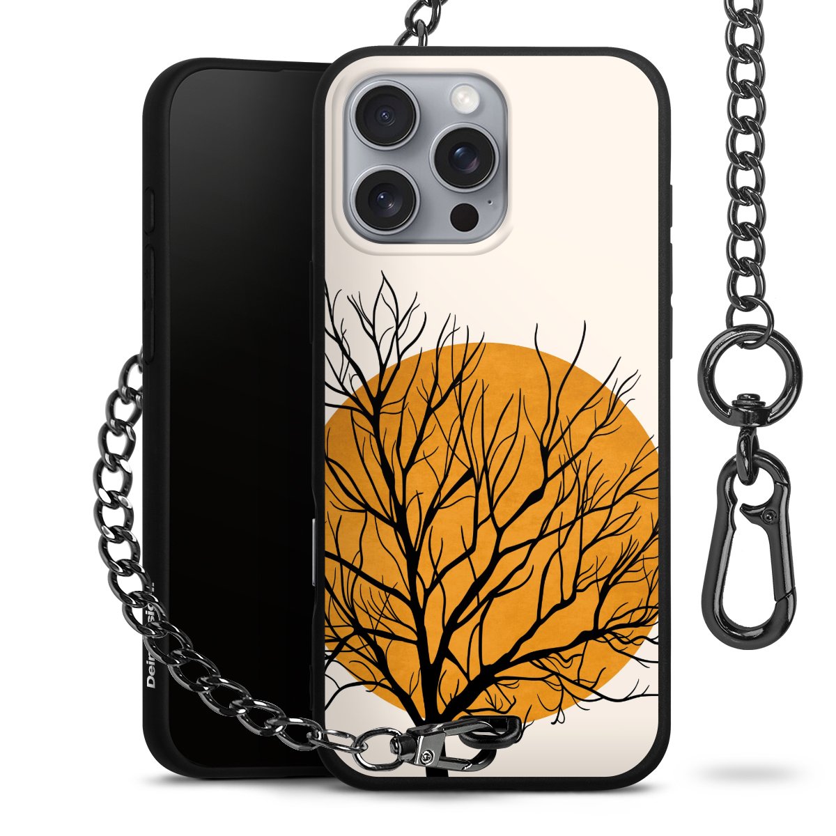 • Mattschwarze Handyhülle mit Metallkette